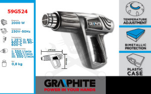 Hőlégfúvó méretei: 270 x 195 x 80 mm