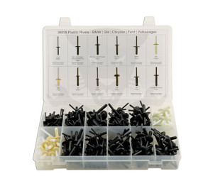 - 36038 - 235 db-os műanyag szegecs készlet - Ford, GM, Mazda, Nissan, Audi, VW, stb.