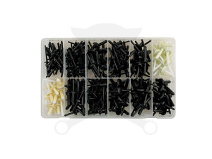 Műanyag szegecsek vegyes doboz Ford, Mazda, Audi, VW - 235 db