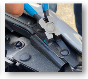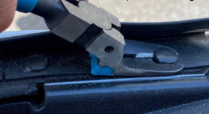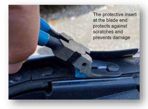 Döntött kivitelű, extra vékony patentkiszedő fogó kifejezetten a kényes helyeken található műanyag rögzítő patentek kiszerelését szolgálja.