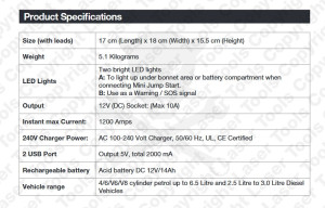 A készülékkel könnyen beindíthatók a benzinmotorok 6.500 cm3-ig és a dízelmotorok 3.000 cm3-ig.