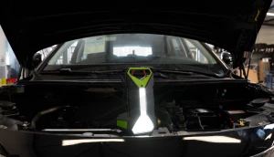 Élénk zöld színnen kombinált, azért hogy véletlenül se felejtsük ott a motorháztető alatt.