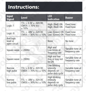 Logikai szintek és impulzusok vizuális és hangjelzései.