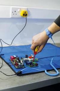 Földelőcsatlakozó elektrosztatikus kisülés (ESD) antisztatikus szerelőmatrachoz.