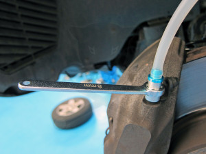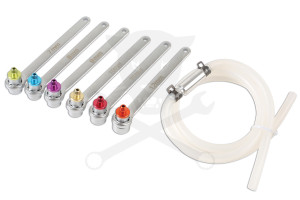 Fék- és hidraulikaolaj cseréjéhez fejlesztett kulcskészlet + tömlő beépített visszacsapó szeleppel