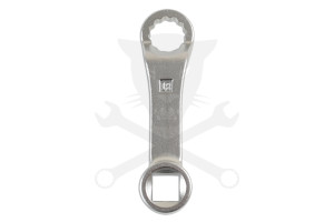 Speciális kialakítású 18 mm-es 12 szögű felfüggesztés beállító célszerszám, amelynek használata lehetővé tesz egy 1/2"-os nyomatékkulccsal való hozzáférést.