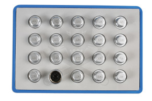 20 db-os készlet, amely egy 7 számjegyből álló, 4 számjegyű kóddal ellátott, masszív tárolórekeszben található