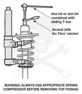 A lengéscsillapítók javításához és cseréjéhez szükséges extra hosszú kulcsokkal. (24 darabos készlet.)