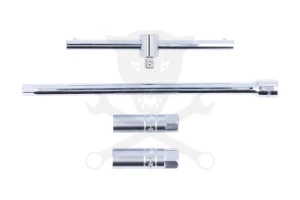 A készlet egy 250 mm-es hosszabbítórúddal és 165 mm-es csúszó T-rúddal (T szárral) is rendelkezik, amelyek elegendő erőt biztosítanak a szűk gyújtógyertyák kioldásához anélkül, hogy racsni kellene.