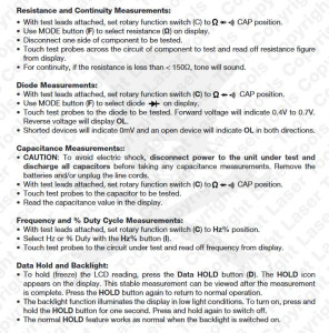 - Diode Test: Teszt áram 0,3 mA tipikus: Nyitott feszültség 1,5 V DC tipikus