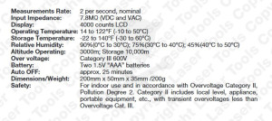 - Bemeneti impedancia: 7.8MOhm (VDC és VAC)