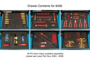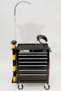 - Tartalmazza az összes szerszámot az egyedileg elhelyezett habtálcákban (1-2-3-4-5-6 fiókokban) és minden biztonsági terméknek saját helye van a szekrényen belül vagy a szekrényhez rögzítve, így biztosítva, hogy semmi se vesszen el véletlenül és mindig minden szerelés közben gyorsan a kéznél legyen.