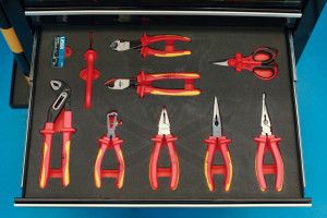 - 2. fiók: 10 db-os szigetelt fogó készlet + szigetelt olló + szigtelt kés + pengék
