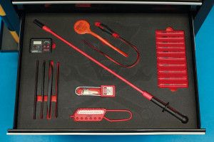 - Tartalmaa többek között nagyfeszültségű PPE (szigetelt kesztyű és arcvédő), nagyfeszültségű táblák, elzáró- és figyelmeztető címkék, biztonsági oszlopok és lánc, mentőoszlop, stb.