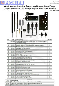 Beletört izzítógyertya kiszerelő készlet Fiat / Opel motortípus specifikus 1.3 Multijet motorokhoz.