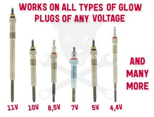 Univerzális kialakítása révén a piacon kapható összes típusú izzítógyertya tesztelérésre alkalmas, feszültségértékől függetlenül.