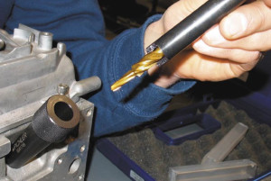 Mercedes gépjárműveken a beletört izzítógyertya kifúrásához és a menetesszár segítségével