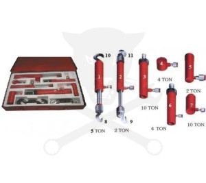 Tartalma: 5 db különféle méretű és erejű hidraulikus nyomóhenger (2 - 4 - 4 - 10 - 10 tonnásak)