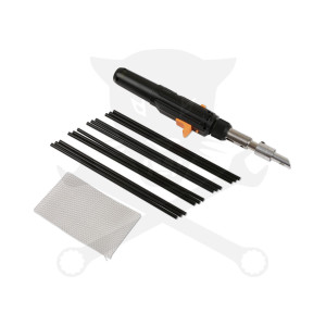 Műanyag hegesztő készlet, amely négy különböző típusú műanyag hegesztőpálcával van kiegészítve, amelyek alkalmasak kisebb törött vagy osztott műanyag alkatrészek,