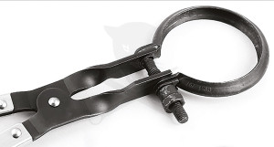 Racsnis rögzítésű kipufogó-bilincsel szerelő fogó.