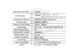 - 5,5 mm-es átmérőjű szonda fényerőszabályzóval