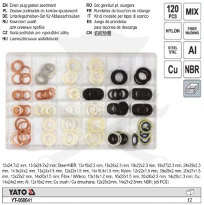 - A készlet alumíniumból, fémből és gumiból, nylonból, filcből és rézből készült alátéteket tartalmaz.