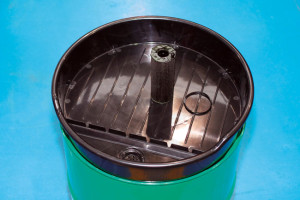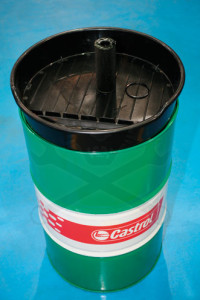 - Olajleeresztő edény, amelyet 205 literes (44-45 gallonos) hordóval való használatra terveztek.