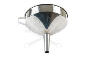 A rozsdamentes acélból készült tölcsér kiválóan ellenáll a rozsdának, a foltoknak, a vegyszereknek és a korróziónak, erősebb és könnyebben tisztítható, mint a műanyag tölcsérek.