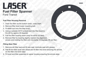 Használatával egyszerűen cserélhető az üzemanyagszűrő egység a 2012 utáni Ford Tranzit 2.2 TDCI gépjárműveken.