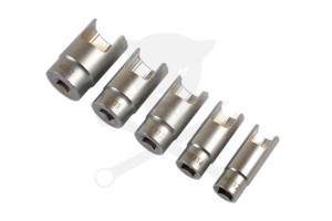Speciálisan tervezett kivágott dugókulcs fejek kifejezetten az "elbow csatalkozókra" tervezve.
