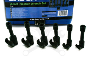 Speciális 6 darabos nyitott, csuklós dugókulcs készlet a dízel befecskendezős motorokhoz.