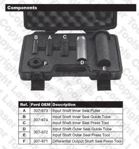 Ford DCT 250 váltóban lévő dupla kuplung szerkezet alatt lévő olaj-tömítés ki- és beszerelő speciális célszerszám készlet.