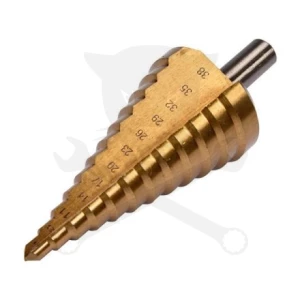 Lépcsős lemezfúró 6-38 mm, HSS 4241 gyoracélból, Titán - Nitrid bevonattal.
