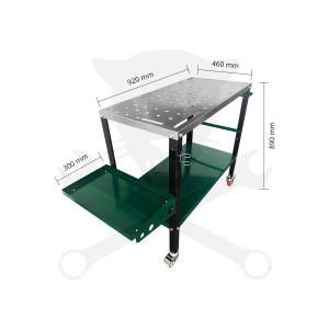 - Az asztal alatti tágas tárolórekesz elegendő helyet biztosít a fontos hegesztési kiegészítők számára.
