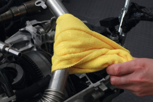 Mikroszálas törlőkendő, közkedvelt a motorok, csövek, mosás után a vízcseppek törlésére.