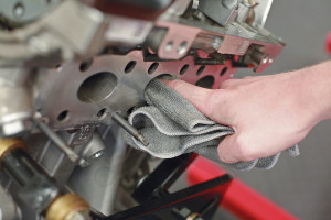 Mikroszálas törlőkendő, közkedvelt a motorok, csövek, mosás utáni vízcseppek törlésére.