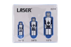 Ez a 3 részes rugóterhelésű univerzális csuklókészlet, amely 1/4", 3/8" és 1/2" hajtócsuklókból áll, úgy lett kialakítva, hogy könnyebben rögzíthetők legyenek a foglalatokba, és akár rögzítőelemeket is biztosítsanak.