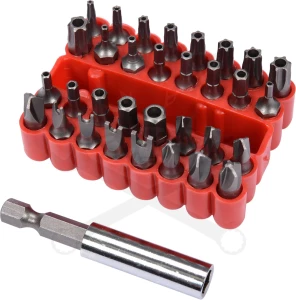 A Vorel 33 részes biztonsági bitkészlet ideális megoldás, ha speciális csavarokat kell szerelni — olyan helyeken, ahol normál bitek csődöt mondanak. A készlet számos speciális Torx, imbusz és egyéb védett csavarprofilhoz kínál megfelelő fejeket, így tökéletes választás elektronikai javításokhoz, háztartási gépekhez, játékokhoz vagy bármilyen zárható, védett csavarhoz.