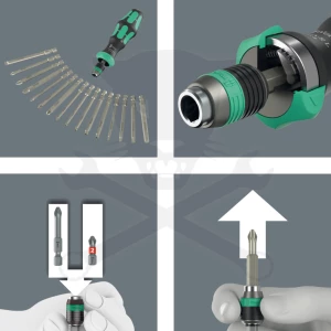 Rapidaptor gyorscserés bitbefogó: egykezes, gyors bitcsere mágneses rögzítéssel.