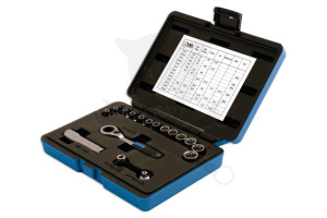 A készlet tartalmaz még egy adapter kiegészítőt, amely lehetővé teszi a 45 fogú racsni használatát standard aljzatokkal