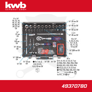 Dugókulcsok: 4 mm, 4.5 mm, 5 mm, 5.5 mm, 6 mm, 7 mm, 8 mm, 9 mm, 10 mm, 11 mm, 12 mm, 13 mm