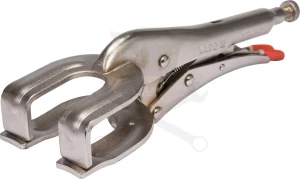 Hegesztőfogó U-pofákkal. Teljes hossza 225 mm. Csavaros nyílásállítással rendelkezik, amely lehetővé teszi a pofák távolságának beállítását az adott anyag vastagságától függően. Amerikai típusú zárral rendelkezik. Nikkelezett felület.