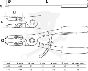 Robosztus kialakítású cserélhető fejű seeger-gyűrű fogók külső és belső gyűrűkhöz.