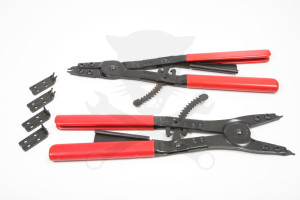 Seegergyűrűfogó készlet cserélhető pofákkal.