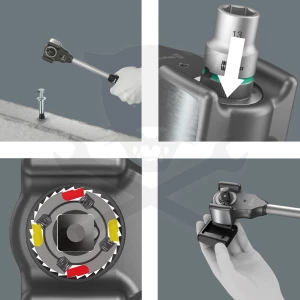 - Finom fogazású racsnis mechanizmus, kis, 6°-os visszatérési szöggel.