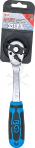Lapos, hajlított fejű ergonómikus markolattal tervezett 72 fogú racsnis kulcs