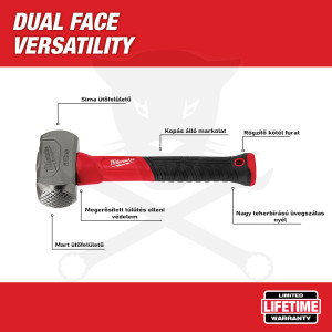 2 féle kialakítású ütőfelület: A mart felület jobb tapadást biztosít és minimalizálja az ütőfelület elmozgását, vésők vagy nagy szegek ütésekor.