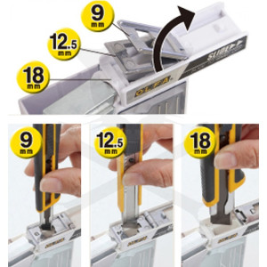 Standard kések használt pengéinek biztonságos letörésére és tárolására szolgáló üríthető doboz.