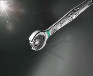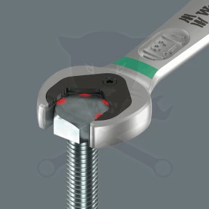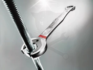 - A gyűrű végén található racsnis mechanizmus finom fogazatával (80 fog) nagy rugalmasságot biztosít még szűk helyeken is