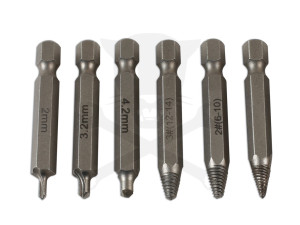 Csavarkiszedő készlet 6 db-os fúró és kihajtó spec. bit készlet: 3-14 mm